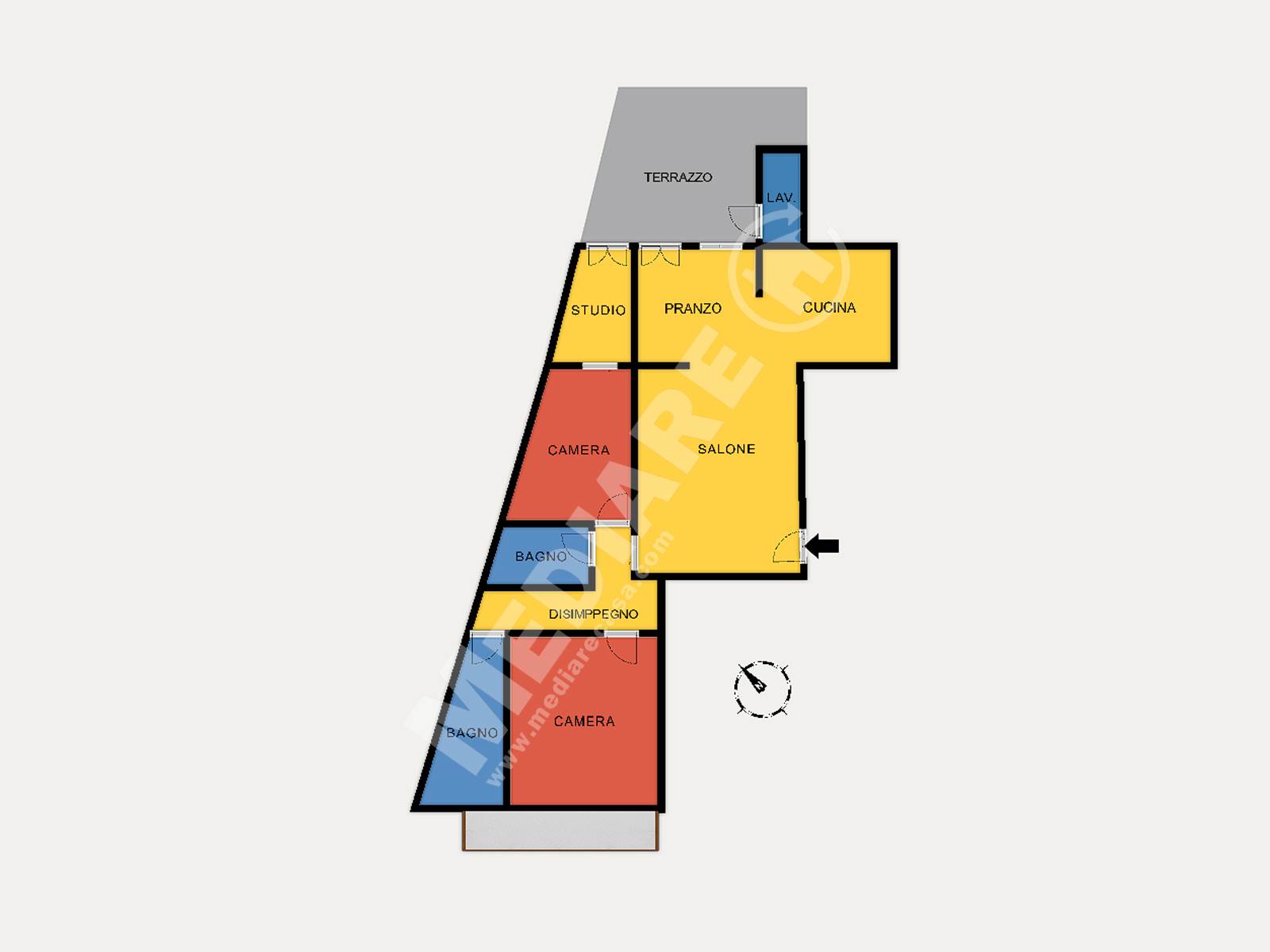 Appartamento al primo piano finemente ristrutturato, caratterizzato da un’ampia zona living composta da soggiorno e sala da pranzo con angolo cottura e cucina in muratura. La zona pranzo si apre su un incantevole terrazzino vivibile, ideale per pranzi e cene all’aperto, dove è stata realizzata anche una pratica cucina di servizio con angolo lavanderia. La soluzione comprende inoltre due camere da letto, uno studio, doppi servizi e box auto situato al piano interrato. L’immobile è termoautonomo e dotato di climatizzazione in tutti gli ambienti.